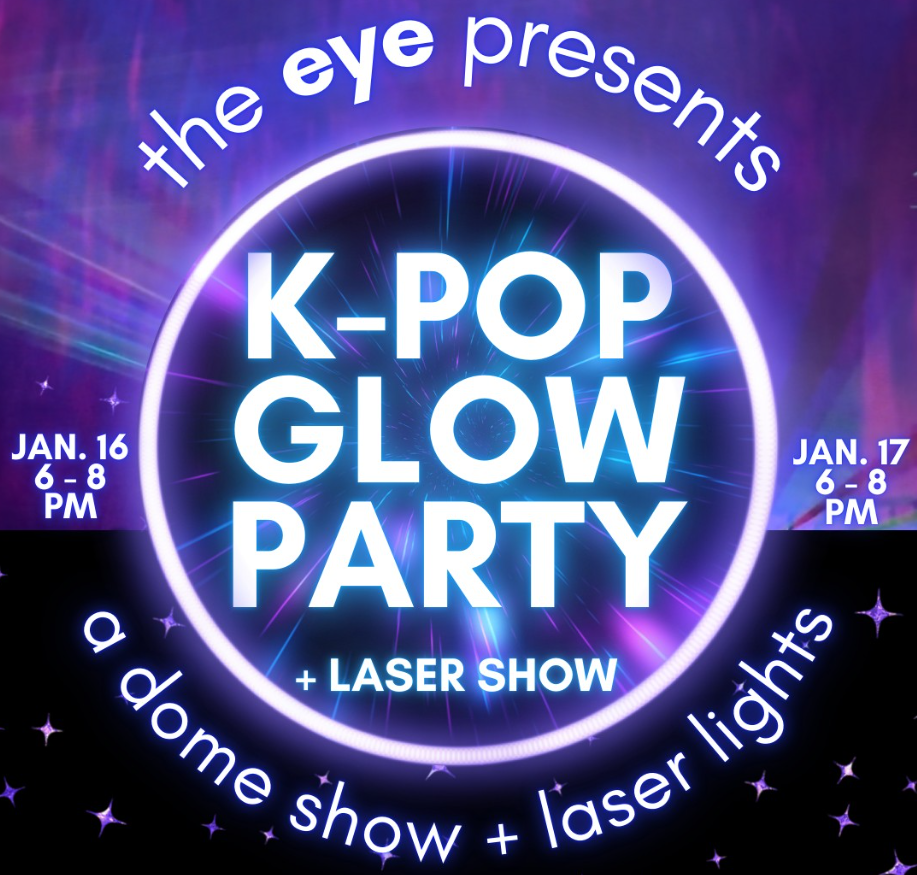 Family Friendly | Ages 5+Get ready to glow with us in January 2026!Join us at The Eye Planetarium for an electrifying K-Pop Glow Party + Laser Light Show! With two event dates to choose from, this is a can’t miss! This event features: A curated playlist of your favorite K-Pop hitsVibrant dome visuals and a high-energy laser light showKorean snacks and refreshments& more!Get ready to glow, groove, and light up the night as you experience K-Pop as you never have before!