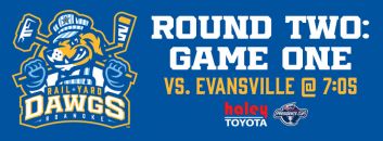 2026 SPHL President's Cup Playoffs - Roanoke Rail Yard Dawgs vs. Evansville Thunderbolts - Round Two: Game One. Rail Yard Dawgs postseason sponsored by Haley Toyota. Media partner is 94.9 STAR Country FM. Parking is $10 while spaces remain or use free shuttle. Event Updates: https://www.railyarddawgs.com/eventupdates