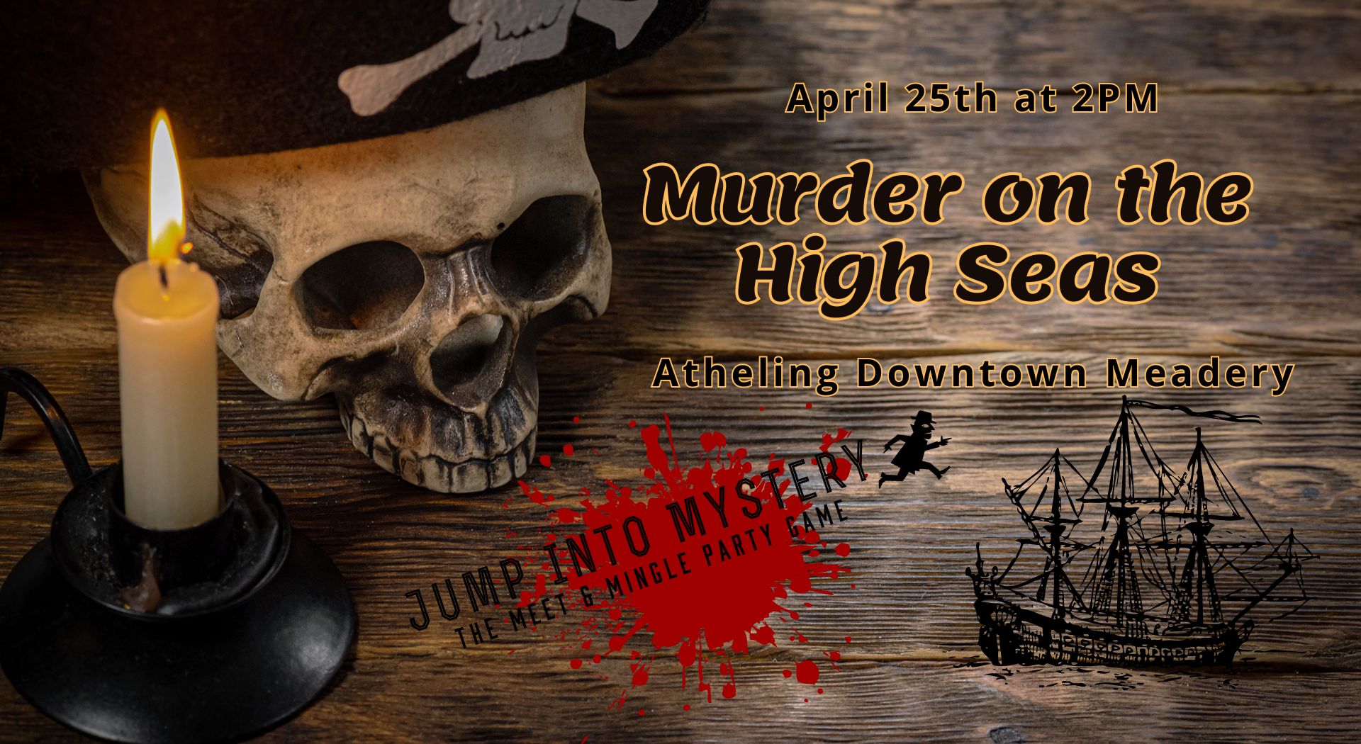 Join Jump into Mystery on Saturday 4/25/26 at 2pm for a pirate themed murder mystery at Atheling Downtown Meadery in Roanoke, VA. This will be an interactive murder mystery event where you will play a character, solve clues, and interrogate all of the suspects. You will laugh, talk, and drink. In the end you will decide who committed the crime using your detective skills. Tickets are available at the early bird price of $30 per person through 2/22/26 and will then be $35 per person. Tickets do not include alcohol. Atheling Meadworks will have mead for sale. You are welcome to bring your own food into the venue. Everyone will get their character role at the event. We will email questions regarding the type of role you would like to play, so be sure to check your spam folder in your email if you have trouble receiving our emails. Everyone in your group will need a separate ticket to attend. You are purchasing a non-refundable ticket to the event. This is an adults only event and will last from 2pm until 5pm. Please plan to arrive between 1:30pm and 1:45pm to get checked in and grab a drink, as the game will start at 2pm.