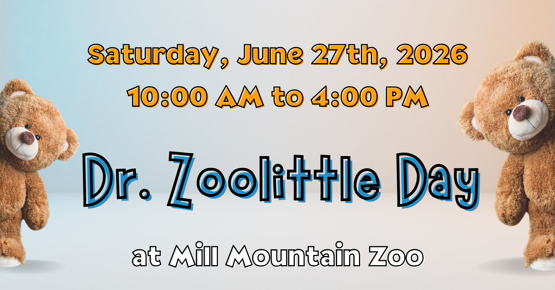 Location: Mill Mountain ZooDate: June 27th, 2026Time: 10 am to 4 pmCost: General Admission; Members pay reduced admission Calling all future veterinarians! Join us at Mill Mountain Zoo for Dr. Zoolittle Day, a fun-filled celebration of veterinary sciences designed for young animal lovers. Bring your favorite stuffed animal for a check-up at our Stuffie Clinic or even adopt a new cuddly friend at our Stuffie Adoption Station! Enjoy hands-on activities, fun crafts, engaging keeper chats, and visit with local veterinarians at special vendor booths.Be sure to save this event and follow us on social media for the latest updates. It’s the perfect day to nurture a love for animals and learn what it takes to care for them!